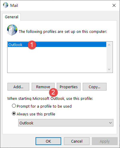 Das Outlook-Profil muss gelöscht und neu erzeugt werden. Der