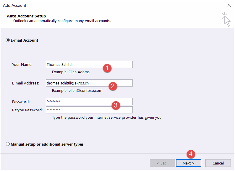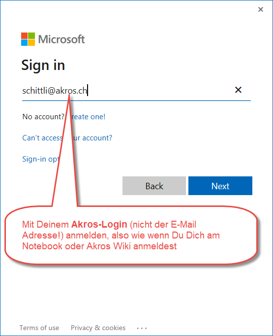 noch holprig. 1. Das bestehende Exchange Akros-Konto löschen 2. Ein